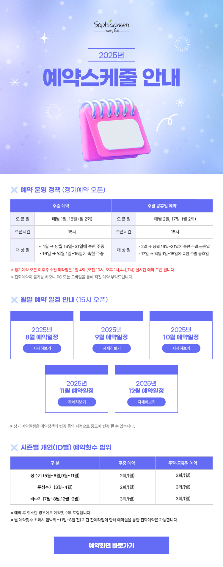 8월 예약일정 9월 예약일정 10월 예약일정 11월 예약일정 12월 예약일정 예약화면 바로가기